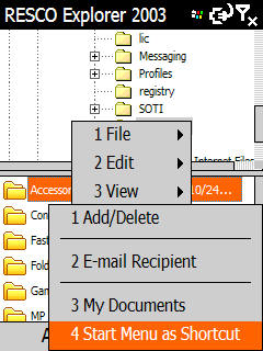 Guest gpcarreon (MVP) Posted February 7, 2006 Report Posted February 7, 2006 I don't know if this also holds true to WM5 devices but on non-WM5, you can create shortcut but you can't open them. It'll give you an error. You can however do it with other 3rd party programs: 1. The easy way is through RESCO File Explorer. From the screenshot you will notice that 'Accessories' is highlighted (on background) then as I hit Menu > Send To, there is an option to send the folder shortcut to the Start Menu (as a shortcut) 2. The freeware alternative is via AutoSmartphone script. I have no idea if this will work on WM5. The trick is a bit complicated but somehow it works on non-WM5 Smartphone. Trick here.