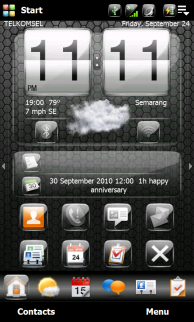 Guest contable Posted September 23, 2010 Report Posted September 23, 2010 @mr. contable please check your mail :lol: @Dr. M.: I forgot to mention that the weather icon on page 1 is also splitted: 1. upper part is for updating weather with MyLocation service (position via GPS) => accu weather with "cartoon icons" 2. lower part is for updating weather with the service and location you have set up before (accu, msn or google) Cheers contable