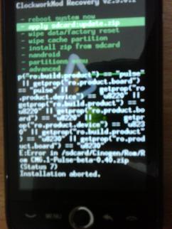 Guest rahadianbandhot Posted January 21, 2011 Report Posted January 21, 2011 Hi.I can't install it. When I did step"5. "install zip from sdcard" then "choose zip from sdcard" then scroll to "CM61-Pulse-0.40-tweak.zip" and "Yes - Install CM61-Pulse-0.40-tweak.zip"" ================================================ I:Verified system/media/audio/ui/KeypressStandard.ogg I:Verified system/lib/libGLESv1_CM.so Installing update... I:read: ui_print Welcome to CyanogenMod-6.1.0-RC2-Pulse! Welcome to CyanogenMod-6.1.0-RC2-Pulse!script aborted: assert failed: getprop("ro.product.device") == "pulse" || getprop("ro.build.product") == "pulse" || getprop("ro.product.board") == "pulse" || getprop("ro.product.device") == "u8220" || getprop("ro.build.product") == "u8220" || getprop("ro.product.board") == "u8220" || getprop("ro.product.device") == "u8230" || getprop("ro.build.product") == "u8230" || getprop("ro.product.board") == "u8230" I:read: ui_print I:read: ui_print assert failed: getprop("ro.product.device") == "pulse" || getprop("ro.bassert failed: getprop("ro.product.device") == "pulse" || getprop("ro.bI:read: uild.product") == "pulse" || getprop("ro.product.board") == "pulse" || E:unknown command [uild.product")] I:read: ui_print getprop("ro.product.device") == "u8220" || getprop("ro.build.pro getprop("ro.product.device") == "u8220" || getprop("ro.build.proI:read: duct") == "u8220" || getprop("ro.product.board") == "u8220" || E:unknown command [duct")] I:read: ui_print getprop("ro.product.device") == "u8230" || getprop("ro.build.pro getprop("ro.product.device") == "u8230" || getprop("ro.build.proI:read: duct") == "u8230" || getprop("ro.product.board") == "u8230" E:unknown command [duct")] I:read: ui_print E:Error in /sdcard/CM6.1-Pulse-beta-0.40.zip (Status 7) Installation aborted. =========================================== What can I do? MyPhone TYPE is CHT8000 already is T-mobile2.1 Offical Ver. I also experienced the same thing, and I've been using the rom u8220 -U8220V100R001C85B003 (Hungarian) -U8220V100R001C125B822_2_1_Eclair_Sweden_H3G -UK -U8220V100R001C32B820b (Venezuela Movilnet) but it still can not install the rom MyPhone TYPE is U8230 anyone can help? The following picture sorry my english is very bad