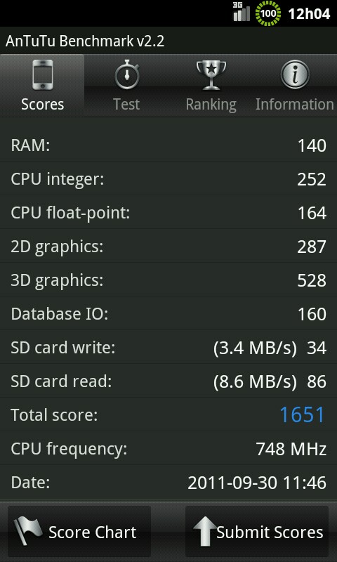 Guest ramaro Posted September 30, 2011 Report Posted September 30, 2011 i thing that the sd read/write speed is....mmm test from last night with blade mix 2.3.4 meego O MIUI ICONS are almost readyyyy my antutu score