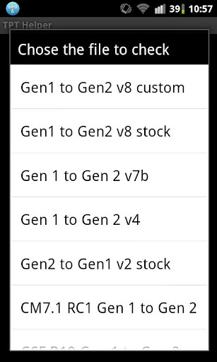 This is a picture from an older version. If you download the latest version from the market, then the first option will be "All In One". Click on that and you will get a list. Choose "Gen 1 to Gen 2 v10a". It will then start downloading the TPT, just wait and watch the screen.